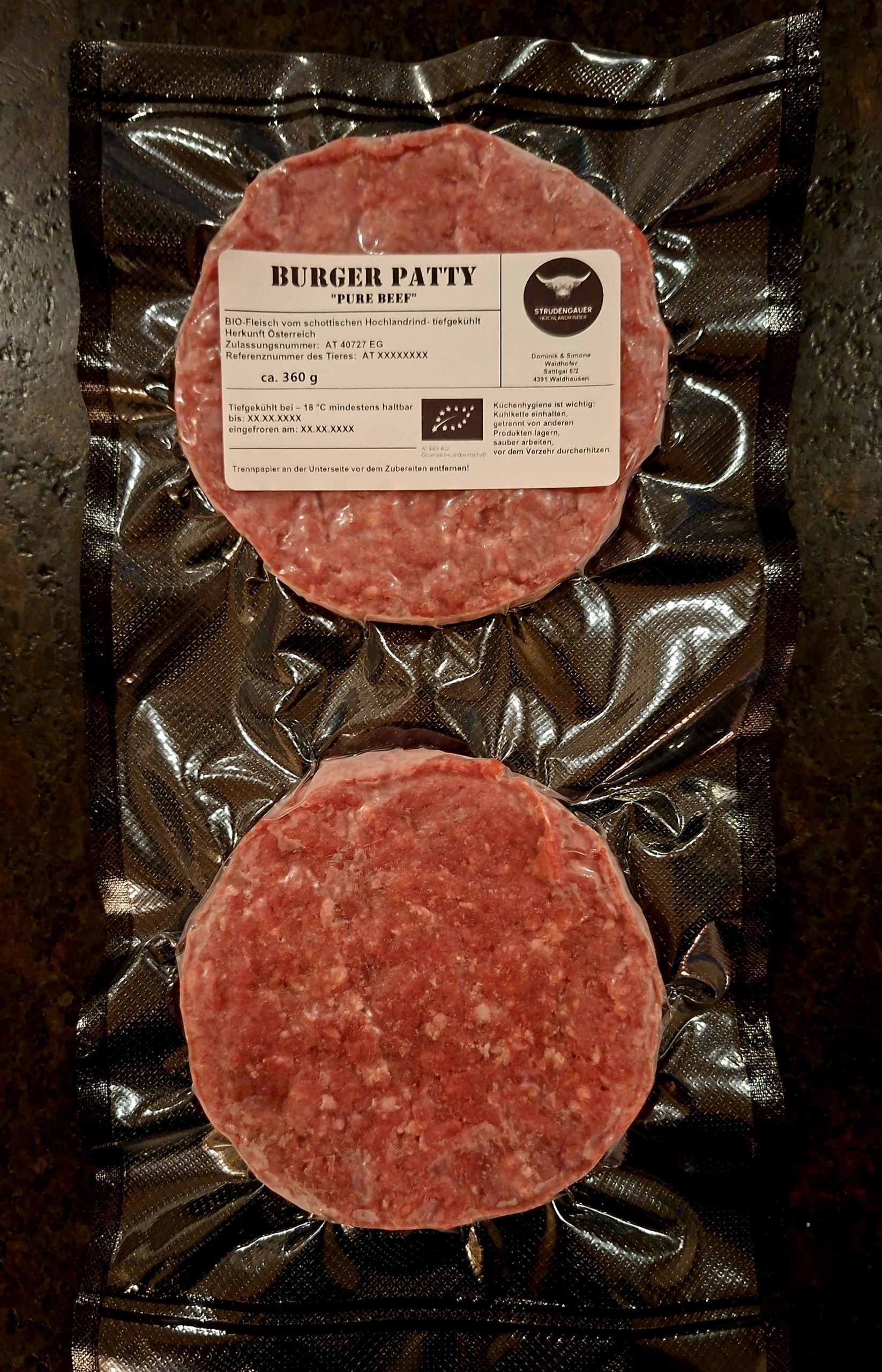 2 Stk. tiefgefrorene Burgerpatties.  ca. 360 g/ Packung